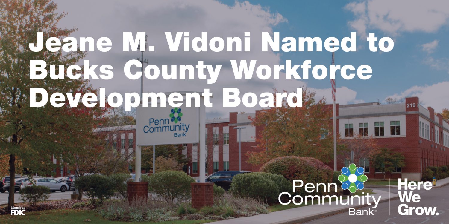 “I am honored to be appointed by the Bucks County Commissioners to serve as part of the Bucks County Workforce Development Board,” said Vidoni. “Penn Community Bank’s mission is to strengthen local economies by helping businesses grow and prosper. Serving as a part of this diverse and impressive board, I am excited to continue this effort by ensuring our region and employers have the workforce needed to succeed.”